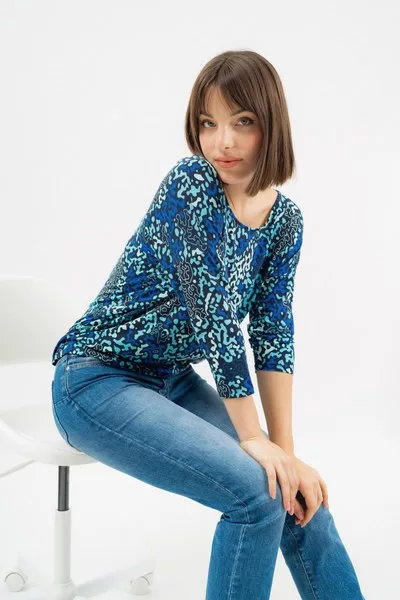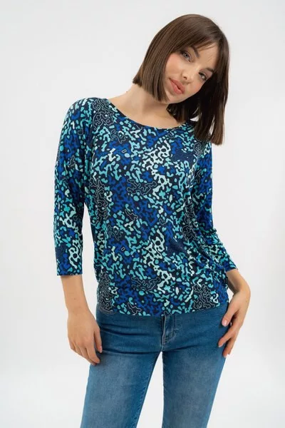 3/4-es ujjú női póló lezser fazon - nyomott mintával és strasszokkal vagy fém címkékkel díszítve<br> <br><p>Ez a <strong>3/4-es ujjú női póló</strong> <strong>lezser fazonú</strong>, amely kényelmes, könnyed viseletet biztosít a mindennapokra. A modellt stílusos <strong>nyomott minta és csillogó strasszok, illetve visszafogott fémcímkék</strong> díszítik.</p>