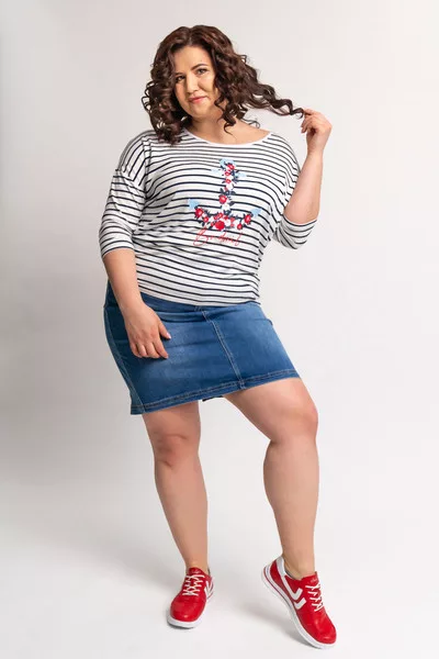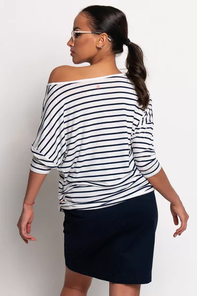 3/4-es ujjú női felső. Lezser fazon. Nyomott mintával díszített.