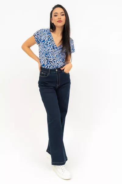 Női póló . Karcsúsított fazon . Húzott mellrésszel . Fémcímkévell díszített.