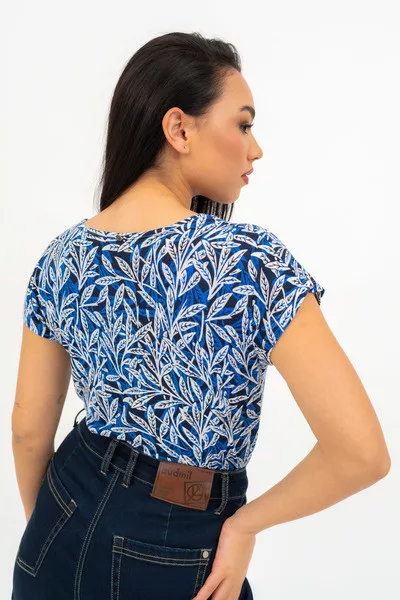 Női póló . Karcsúsított fazon . Húzott mellrésszel . Fémcímkévell díszített.