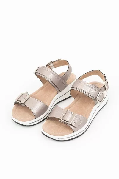 női szandál felsőrésze és bélése valódi bőr - fémcímkével és nyomott mintával díszítve<br> <br><p>