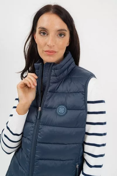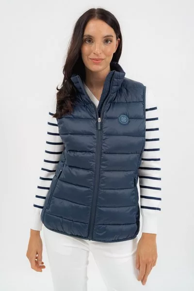 női steppelt vékony mellény anyaga vízlepergető - enyhén karcsúsított fazon - belső zsebek - gumicímkékkel díszítve<br> <br><p>Ez a <strong>női steppelt vékony mellény</strong> praktikus és stílusos választás az átmeneti időszakra. A <strong>vízlepergető anyag</strong> védelmet nyújt a kisebb eső és a szél ellen, míg az <strong>enyhén karcsúsított fazon</strong> nőies sziluettet biztosít.