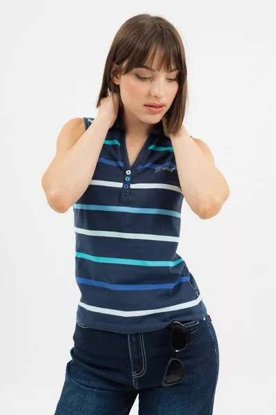 ujjatlan női galléros felsőszűk fazon - nyomott mintával díszítve<br> <br><p>Ez az <strong>ujjatlan női galléros felső</strong> <strong>szűk fazonú</strong>, amely kiemeli a nőies vonalakat és kényelmes, testhez simuló viseletet biztosít. A modellt stílusos <strong>nyomott minta</strong> díszíti.</p>