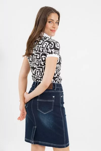 női galléros póló karcsúsított fazon - fémcímkékkel díszített<br> <br><p>Ez a <strong>női galléros póló</strong> <strong>karcsúsított szabású</strong>, amely finoman követi a test vonalát, kiemelve a nőies vonalakat, miközben kényelmes viseletet biztosít. A pólót elegáns <strong>fémcímkék</strong> díszítik.</p>