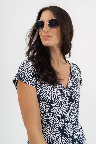 női póló karcsúsított fazon - húzott mellrésszel - fémcímkékkel díszítve<br> <br><p>Ez a <strong>női póló</strong> <strong>karcsúsított fazonú</strong>, amely kiemeli a nőies vonalakat és kényelmes, testhez simuló viseletet biztosít. A <strong>húzott mellrész</strong> finoman formázza az alakot, miközben stílusos részletet ad a ruhadarabnak. A pólót visszafogott <strong>fémcímkével díszítették</strong>.</p>