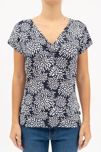 női póló karcsúsított fazon - húzott mellrésszel - fémcímkékkel díszítve<br> <br><p>Ez a <strong>női póló</strong> <strong>karcsúsított fazonú</strong>, amely kiemeli a nőies vonalakat és kényelmes, testhez simuló viseletet biztosít. A <strong>húzott mellrész</strong> finoman formázza az alakot, miközben stílusos részletet ad a ruhadarabnak. A pólót visszafogott <strong>fémcímkével díszítették</strong>.</p>