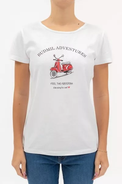 női pólókarcsúsított fazon - nyomott mintával díszítve<br> <br><p>Ez a <strong>női póló</strong> <strong>karcsúsított fazonú</strong>, amely nőies vonalakat hangsúlyoz, miközben kényelmes viseletet biztosít egész napra. A modellt stílusos <strong>nyomott minta díszíti</strong>.</p>