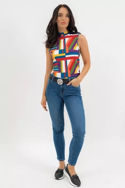 ujjatlan női felsőszűk fazon - fémcímkékkel díszítve<br> <br><p>Ez az <strong>ujjatlan női felső</strong> <strong>testhez simuló, szűk fazonú</strong>, amely kiemeli a nőies vonalakat és kényelmes viseletet biztosít. A modellt letisztult <strong>fémcímkékkel díszítették</strong>.</p>