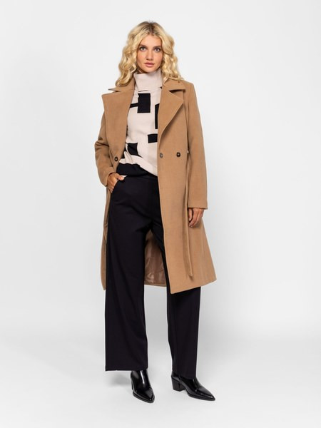 Barna színű Heavy Tools Nebbia Camel női kabát.