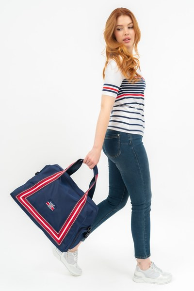 45X28X20 CM - női textil sporttáska, utazótáska - anyaga vízlepergető - cipzáras zsebekkel - állítható, leszedhető vállpánttal - szövött címkével díszítve