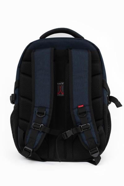 33x46x21cm, 0,87 kg. Alapanyaga vízlepergető. Mindkét oldalán hálós kulacstartó zseb. Légcsatornás hátlap. Három különálló cipzáros rekesz. Az első rekeszben rendszerező zsebek. Laptoptartó: 30X40cm.