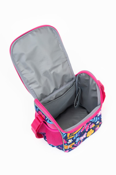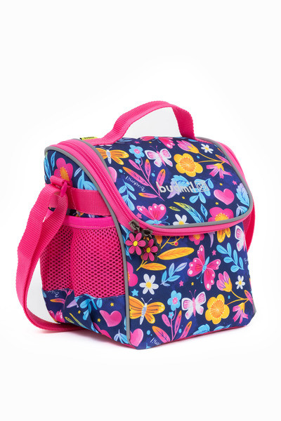 20x21x15 cm, 0,23 kg. Egyrekeszes uzsonnás táska. Alapanyaga vízlepergeto. Hotartó fóliával bélelt. Belül kulacstartó gumipánttal és hálós zsebbel. Egyik oldalán hálós kulacstartó zsebbel.