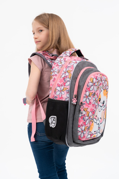 30x43x20 cm, 1,04 kg. Alapanyaga vízlepergető. Fényvisszaverő részletek. Mindkét oldalán hálós kulacstartó zseb. Légcsatornás hátlap . Eleje kikeményített. Különböző testmagasságokhoz állítható pántok. Három különálló cipzáros rekesz. Az első rekeszben rendszerező zsebek. Esovédő huzattal.