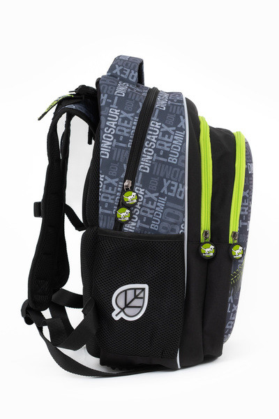 30x43x20 cm, 1,04 kg. Alapanyaga vízlepergető. Fényvisszaverő részletek. Mindkét oldalán hálós kulacstartó zseb. Légcsatornás hátlap . Eleje kikeményített. Különböző testmagasságokhoz állítható pántok. Három különálló cipzáros rekesz. Az első rekeszben rendszerező zsebek. Esővédő huzattal.