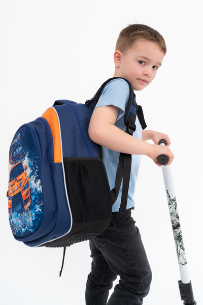 30x43x20 cm, 1,04 kg. Alapanyaga vízlepergető. Fényvisszaverő részletek. Mindkét oldalán hálós kulacstartó zseb. Légcsatornás hátlap . Eleje kikeményített. Különböző testmagasságokhoz állítható pántok. Három különálló cipzáros rekesz. Az első rekeszben rendszerező zsebek. Esővédő huzattal.